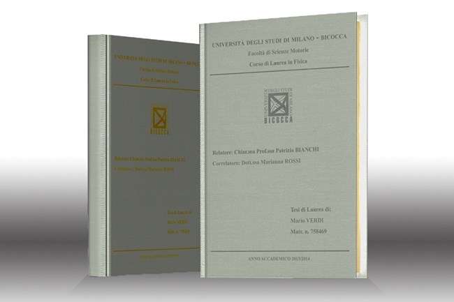 Ad esempio, puoi scegliere una copertina in ecopelle o in seta con un’ampia scelta di colori, tra cui il classico grigio perla o il blu accademico, perfetti per conferire un aspetto elegante e autorevole al tuo lavoro. Inoltre, i servizi di stampa online offrono spesso la possibilità di aggiungere dettagli personalizzati come il nome dell'università, il tuo nome e il titolo della tesi stampati in oro o argento.