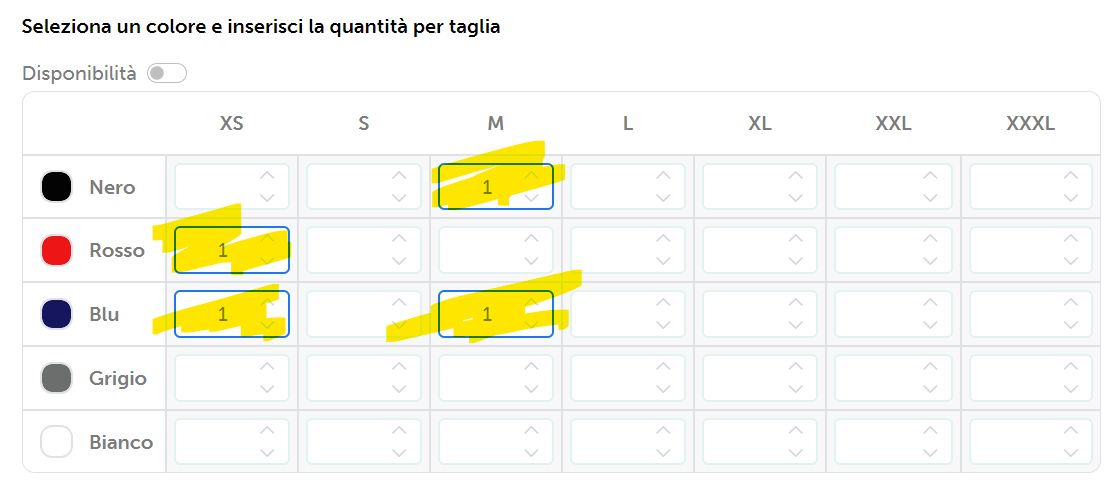 Certo che si, basta selezionare dalla tabella - vedi punto 1) - più combo taglia/colore.