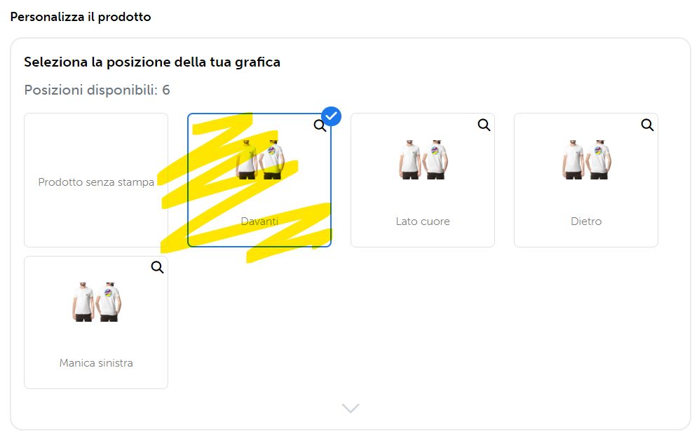 Per personalizzare con grafiche diverse più capi è necessario configurare il primo preventivo con la prima grafica, aggiungere il prodotto al carrello, quindi tornare nella pagina di dettaglio prodotto e ripetere i punti dall' 1) al 5) visti nel precedente paragrafo.